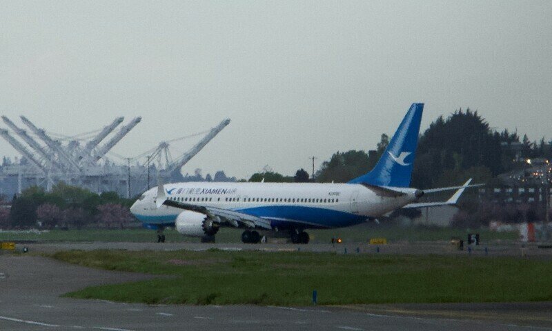 On Sunday, a 737 Max painted with the Libyan for the China Airlines Xiamen made the return trip from Zhoushan and landed in the Boeing field of Seattle.