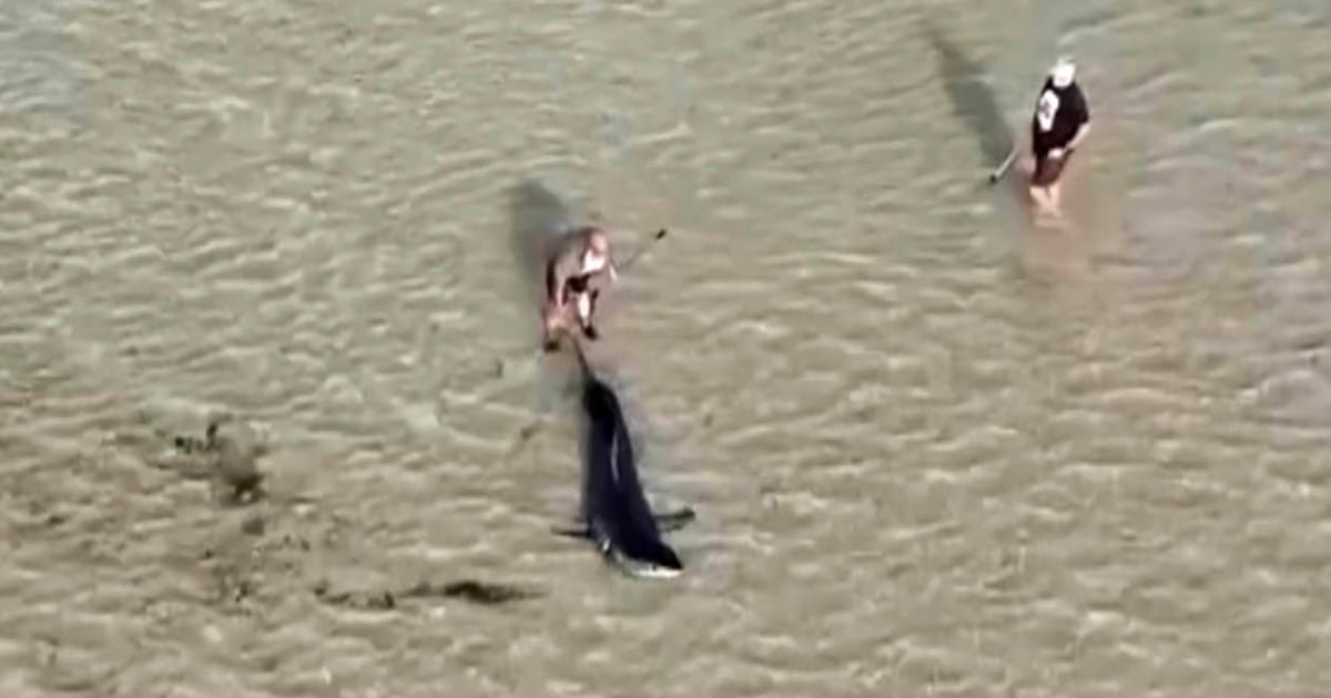 Melbourne, Australia-Tourist Nash Core admits that he felt some fear when he and his 11-year-old son got into the ocean off the coast of Australia to help rescue a large 10-foot white shark stranded in shallow waters.