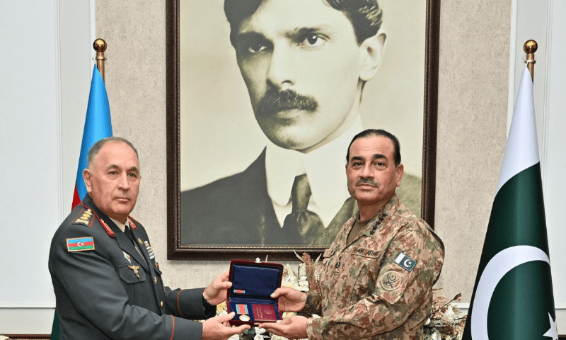 “On the occasion, Colonel General Karim Valiyev conferred to the Marshal Munir, the prestigious Patriotic War Medal of Azerbaijan for the services of ‘Services in the field of military cooperation’, on behalf of President Illham Aliyev, in recognition of his exceptional contributions in Azerbaijan-Pakistan Bilateral Cooperation,” said the statement.