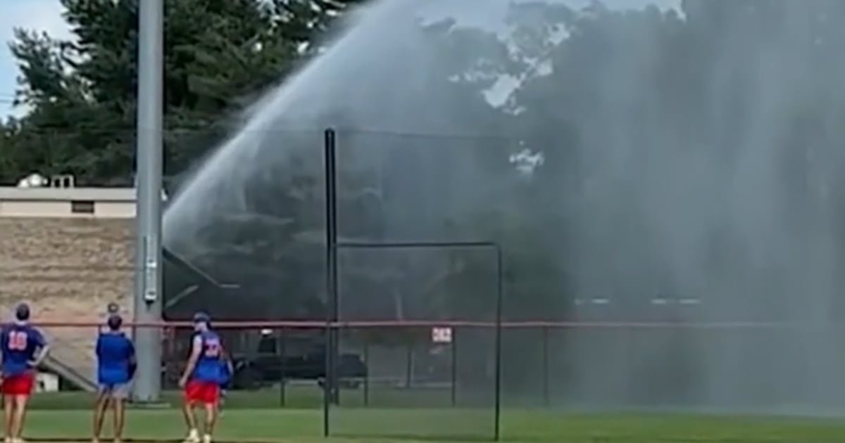 Moments later, a large current of water began cascading in the field where the team was about to play.