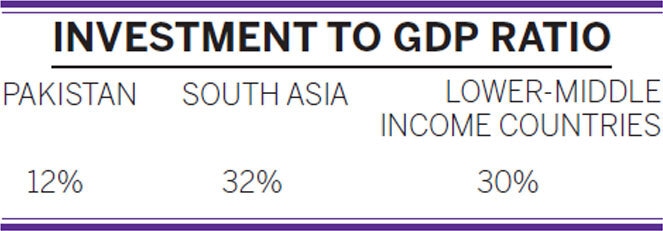 Before we can produce anything, we need to invest in productive capacity first. The Investment-to-GDP ratio for Pakistan has consistently remained in the range of 12 percent, while that for South Asia is 32 percent, and for lower middle-income countries, it is 30 percent. If Pakistan ever wants to be a middle-income country, it needs to achieve and maintain an Investment-to-GDP ratio in the range of 25-30 percent consistently.