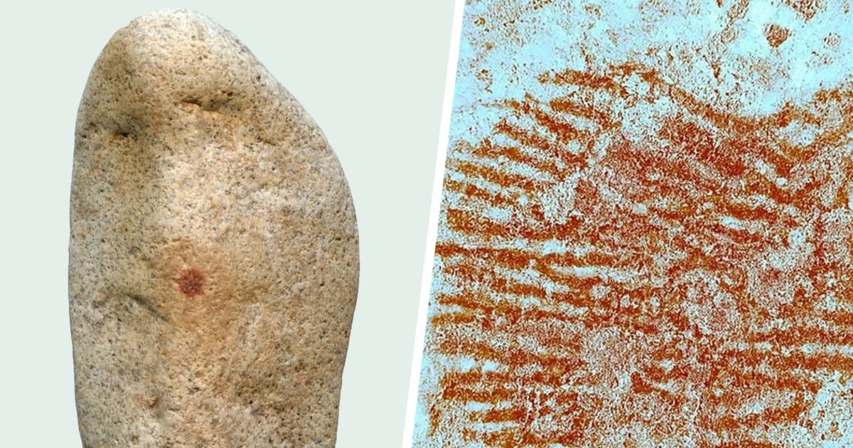 The canvas was a Granito -rich in quartz pebble that was excavated from a rock shelter in the center of Spain in 2022, in a layer dating between 42,000 and 43,000 years. By mediating more than 8 inches long, the Guijarro has curves and clefts that resemble a human face.